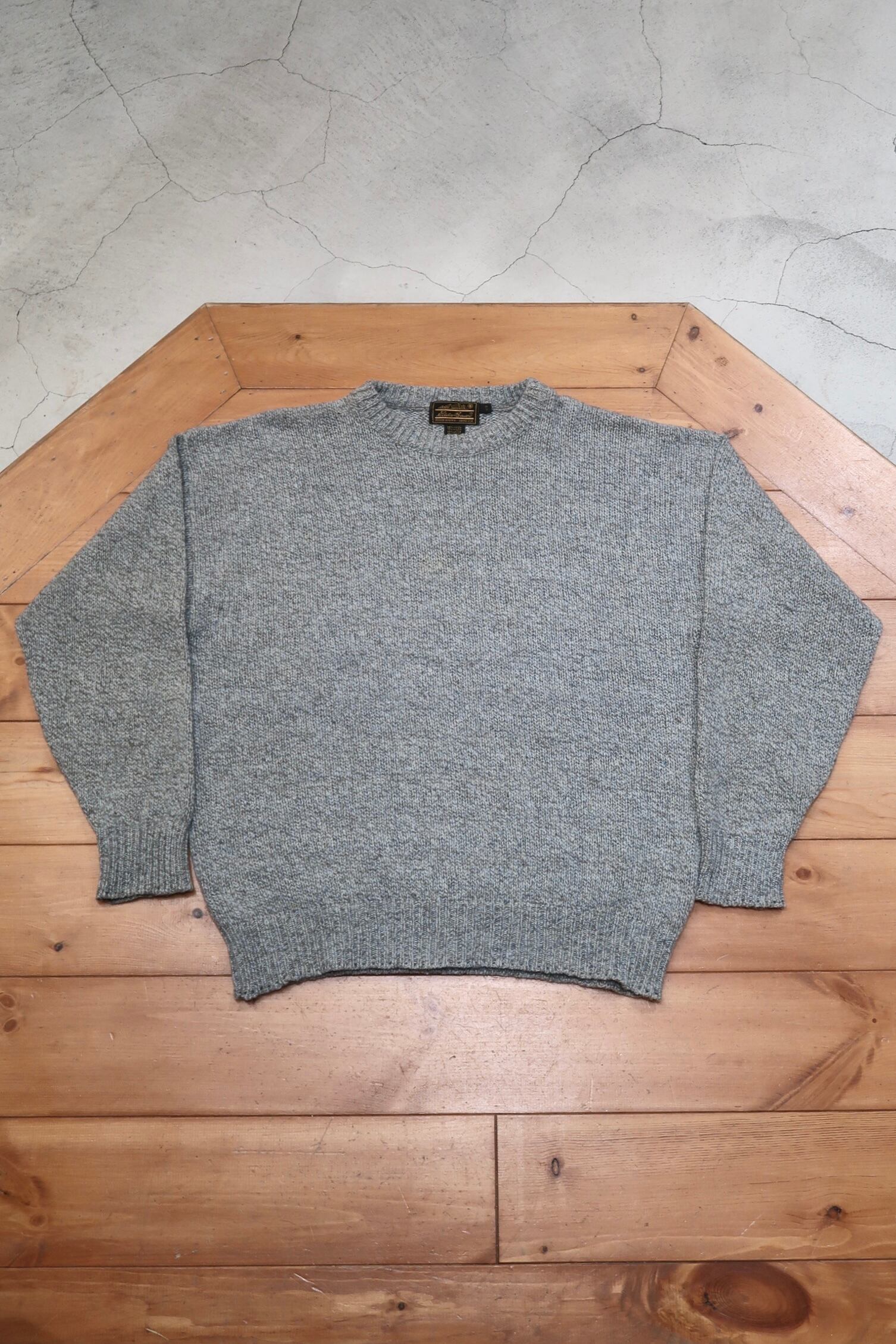 "made in USA" 80's~『 Eddie Bauer 』エディーバウアー メランジ ウールセーター 無地 黒タグ ニット セーター 古着