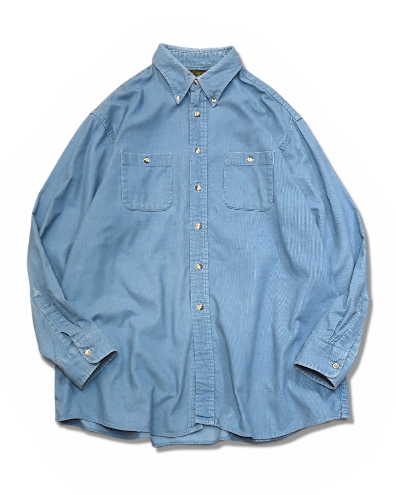 70's~『 Eddie Bauer 』エディーバウアー コーデュロイ ボタンダウン 黒タグ前期 無地 長袖シャツ 古着