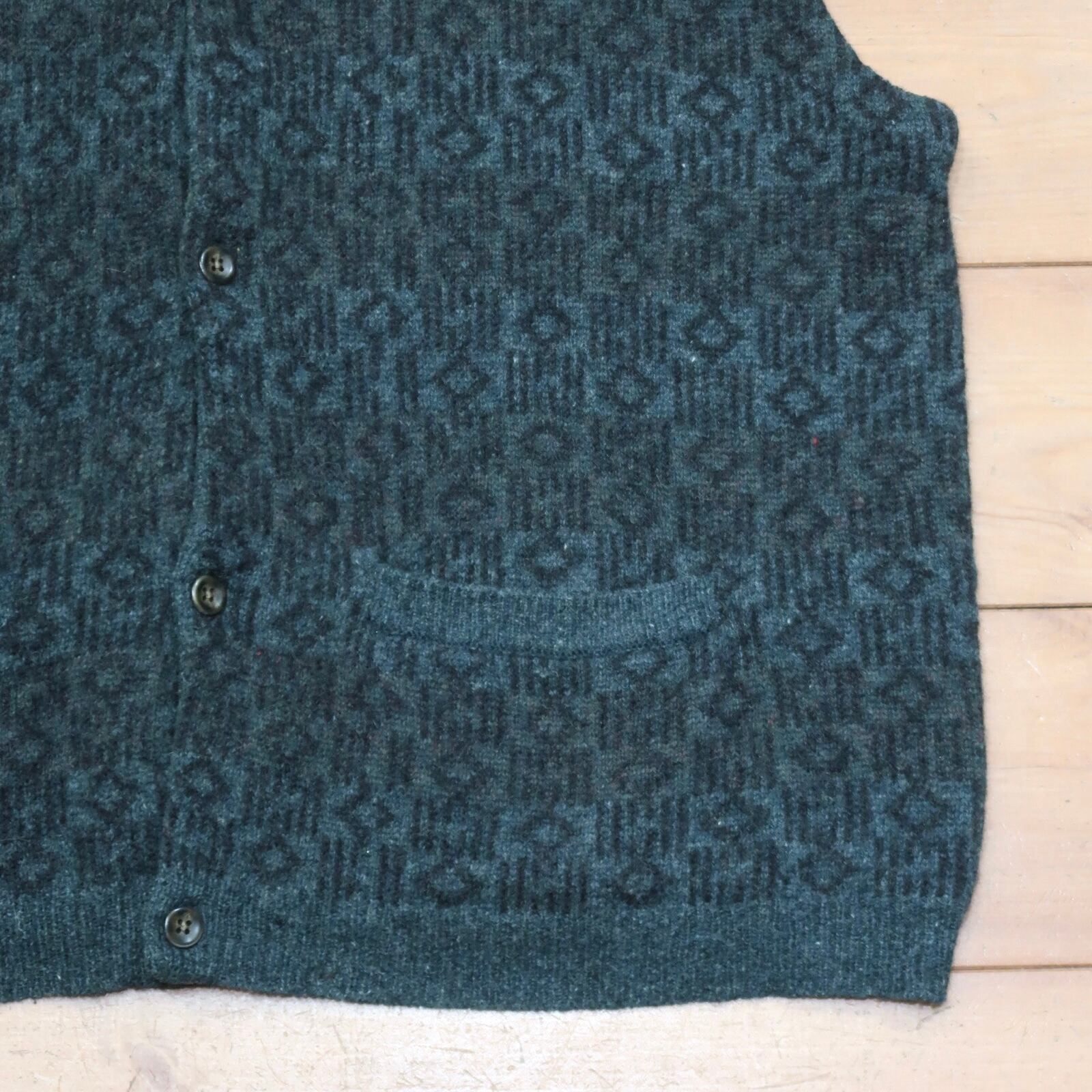 規則的な織り柄が特徴のウールベスト。